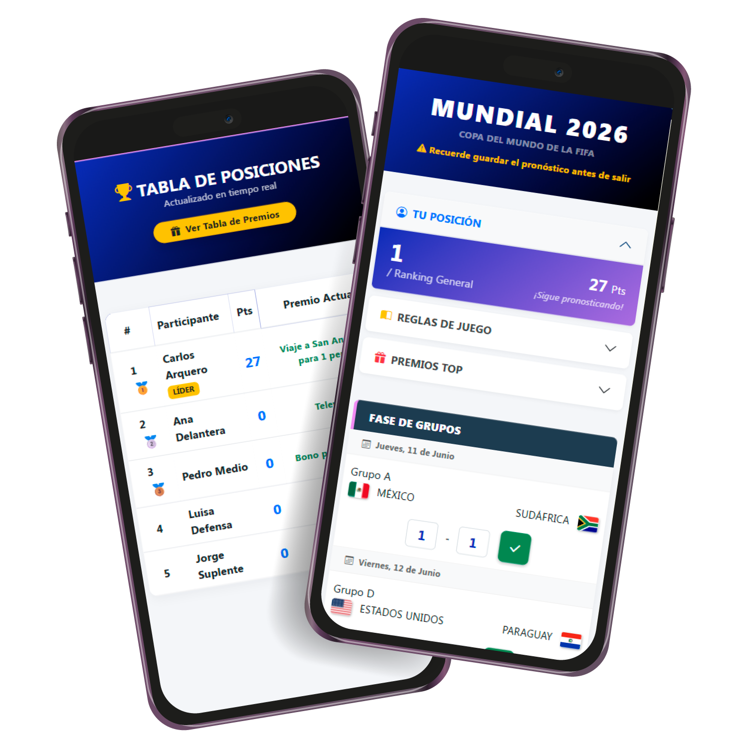 Consulta la tabla de posiciones actualizada automáticamente con cada resultado.